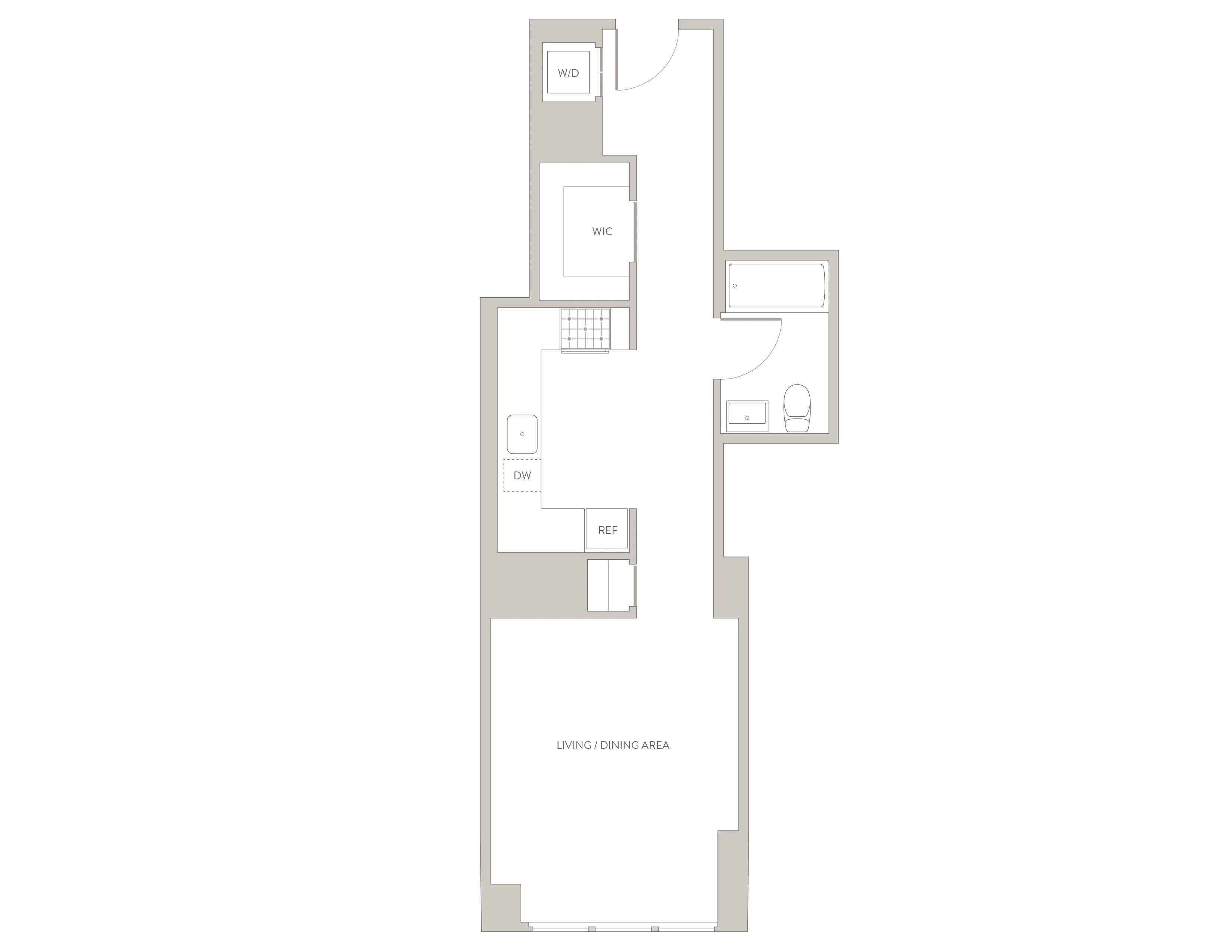 Modern studio apartment. Features spacious living area with separate kitchen and dining nook, as well as a walk-in closet. Beautiful condo-level finishes and w/d in unit.