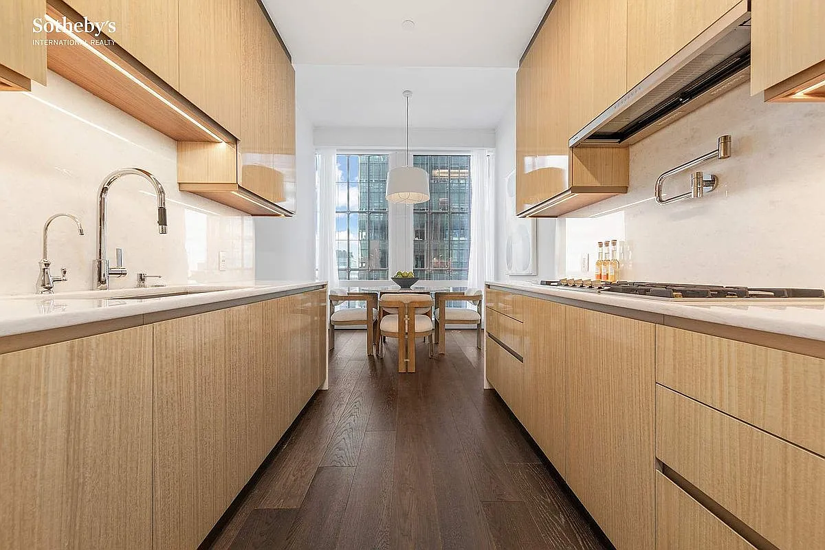 Perched high above Manhattan, this west-facing 2 bedroom, 2 ½ bathroom Residence 6102 35 Hudson Yards offers a front-row seat to the Hudson River and some of the most breathtaking sunsets in the city. As the day fades, golden light pours through the expansive windows with ceilings just under 11’ high, creating a serene retreat suspended above the river and skyline. Thoughtfully proportioned and ideal for both everyday living and entertaining, the residence balances openness with privacy, enhanced by wide-plank French oak floors that run throughout the home.