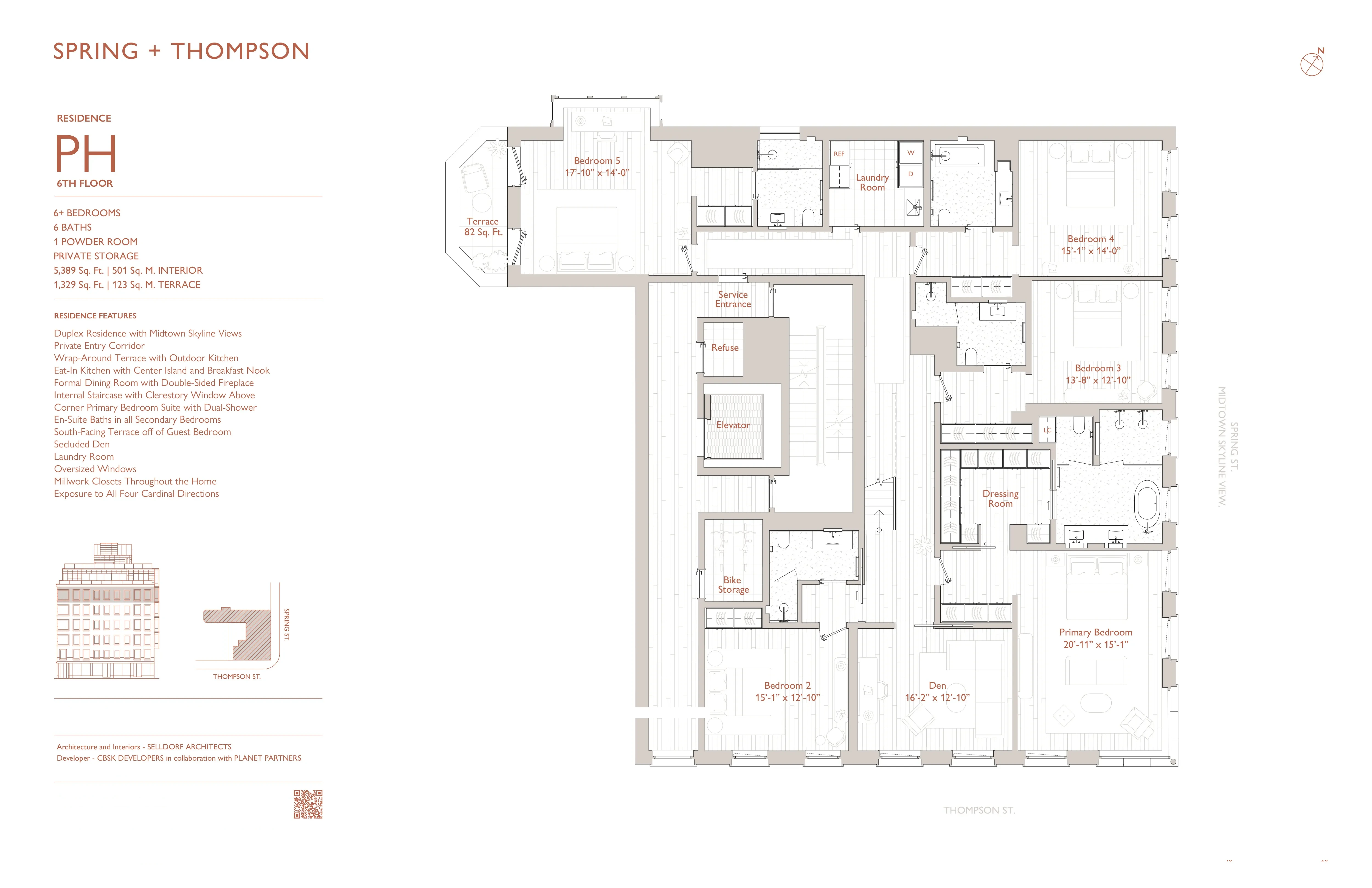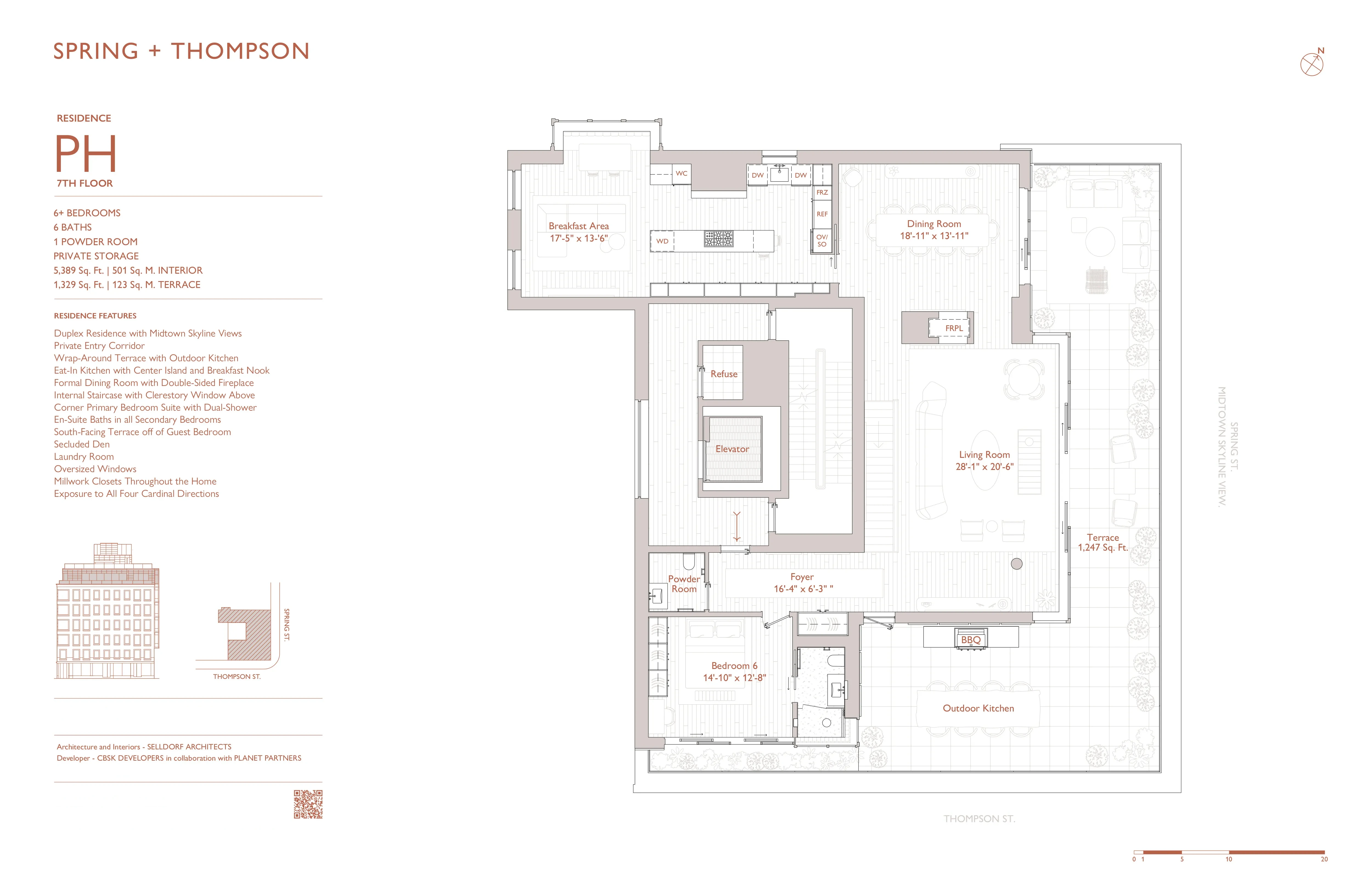 Sponsor for Limited Time Now Offering 50% Credit for first 12-Months of Common Charges (originally $18,985 per month, now $9,493 per month) pre-paid in credit at closing. The Penthouse at Spring + Thompson, is a sprawling 7 bedroom duplex home providing a discreet yet unequivocally luxurious urban living experience. The Penthouse occupies the entire top two floors (floors six and seven) of this new boutique-scale condominium.