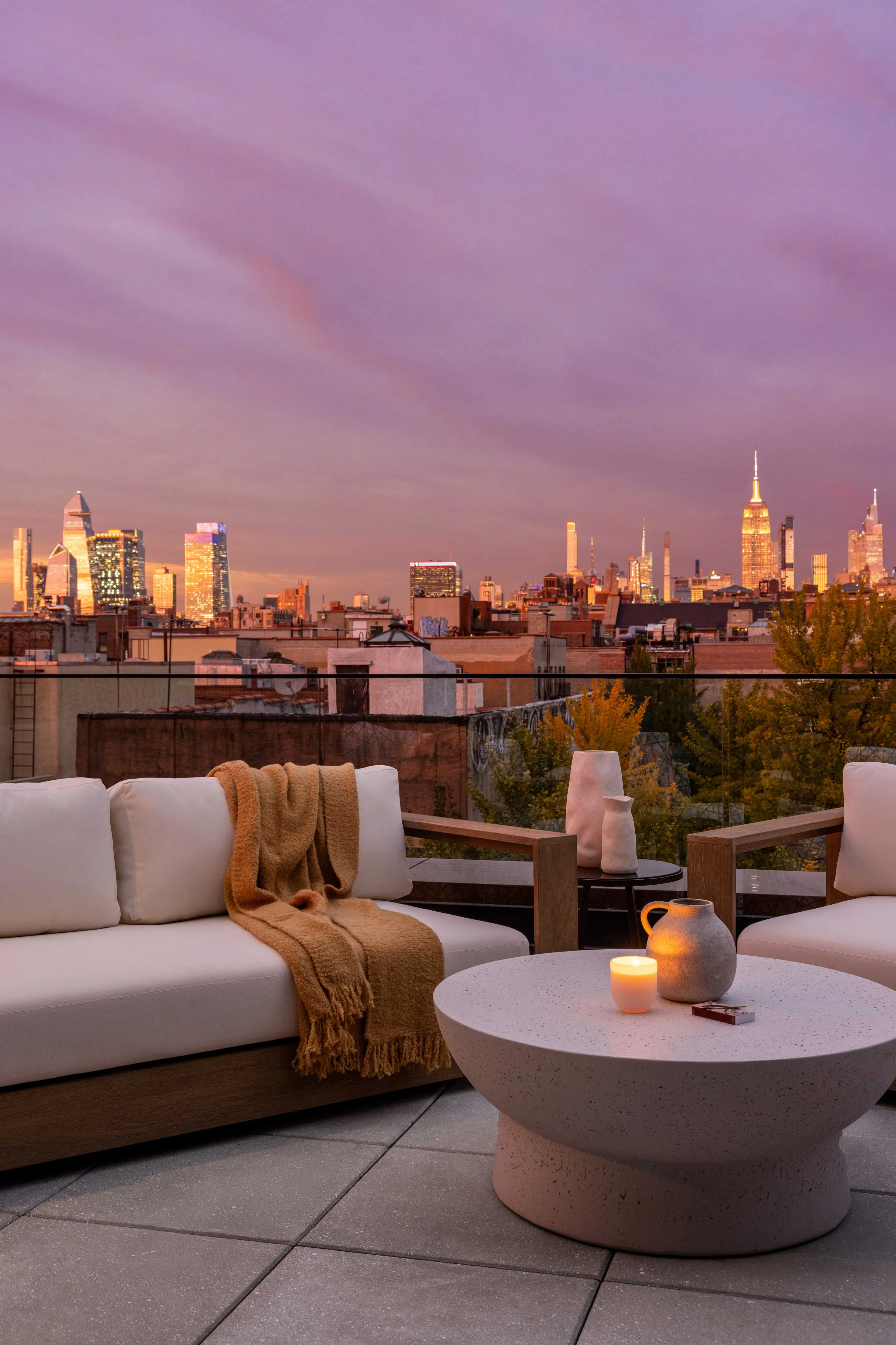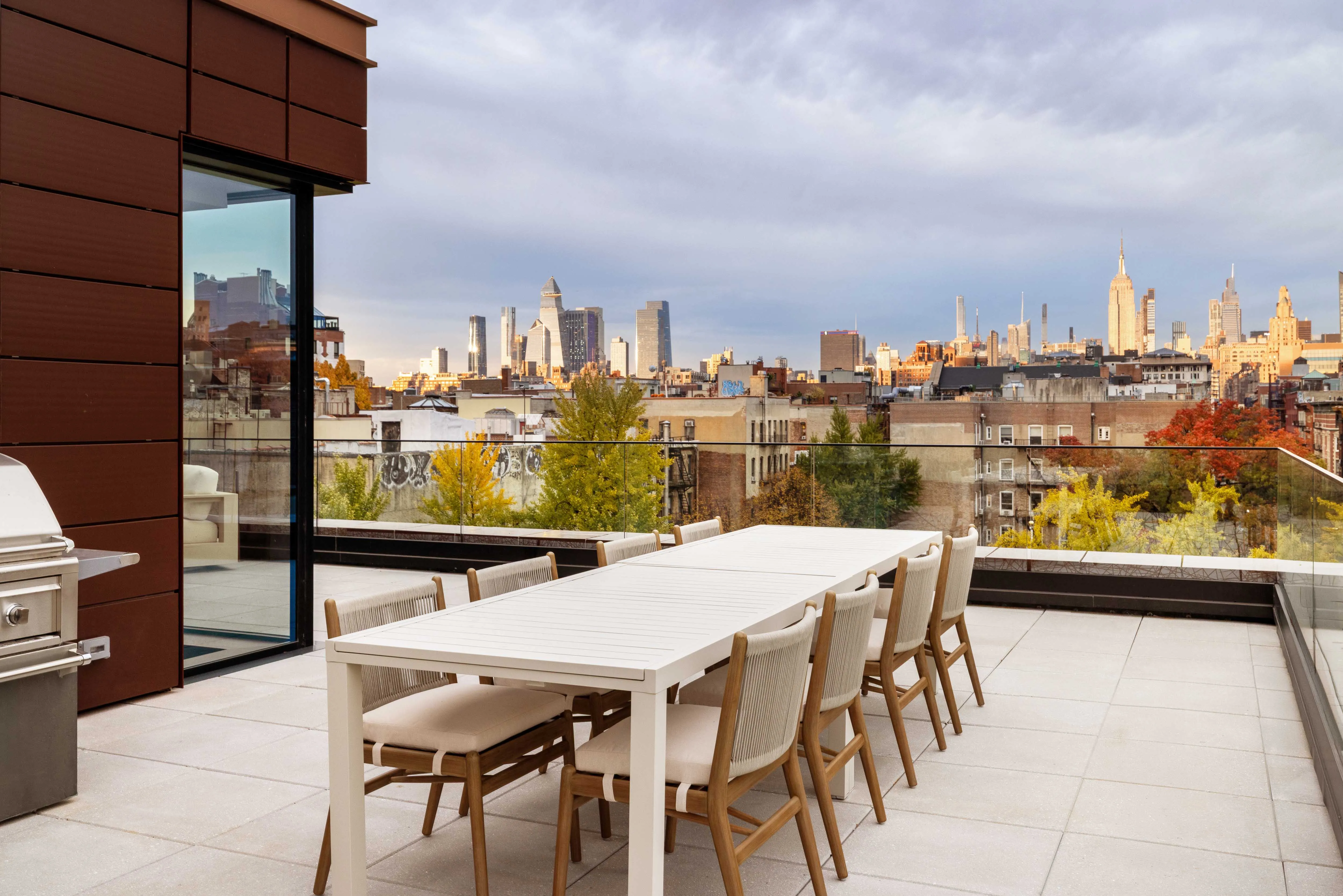 The living and entertaining spaces are located on the upper level, where from the moment you enter the residence, you are greeted by panoramic views of the midtown skyline. The living room is encased in floor-to-ceiling windows looking out onto a 1,000+ Sq. Ft. wrap-around terrace.
