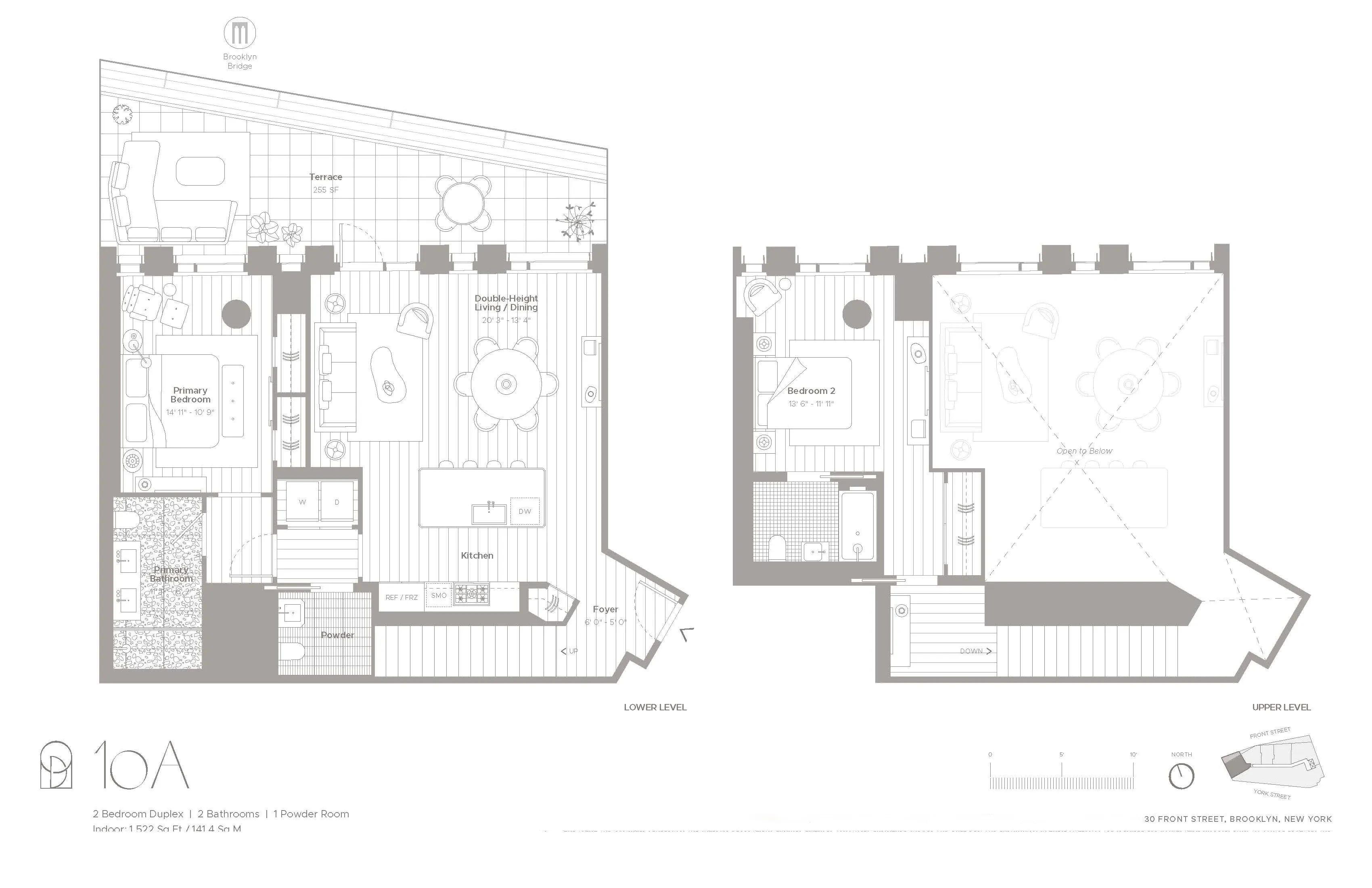 Immediate Occupancy. On-site model residences now available to tour by appointment. Introducing Duplex Residence 10A. With ceilings soaring up to 18', this two-bedroom, two-and-a-half-bathroom residence offers a 279 SF private terrace.
