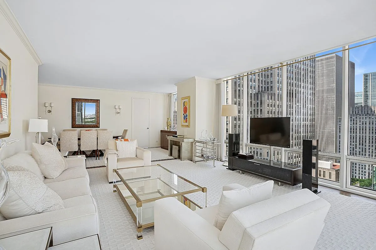 Welcome to Residence 26A at the iconic 641 5th Ave, a sophisticated two-bedroom, two-and-a-half bath home offering 1,791 square feet of sleek one-level living high above Fifth Avenue. Perched on the 26th floor, this residence showcases sweeping north and west views, framing Central Park and the Manhattan skyline through floor-to-ceiling windows that flood the interiors with natural light all year round. A gracious entry leads to a formal dining area and an oversized living room-perfect for both elegant entertaining and everyday comfort.