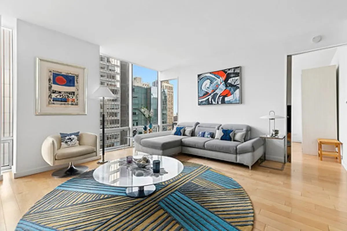 Large windows frame iconic views, flooding the space with natural light and complementing the refined interior design. Situated in one of New York's most prestigious locations, this home offers an unparalleled urban lifestyle, combining luxury with the vibrant energy of the city. Enjoy the assurance of 24-hour professional service, privacy, and security provided by the building staff, ensuring a serene and comfortable living experience.