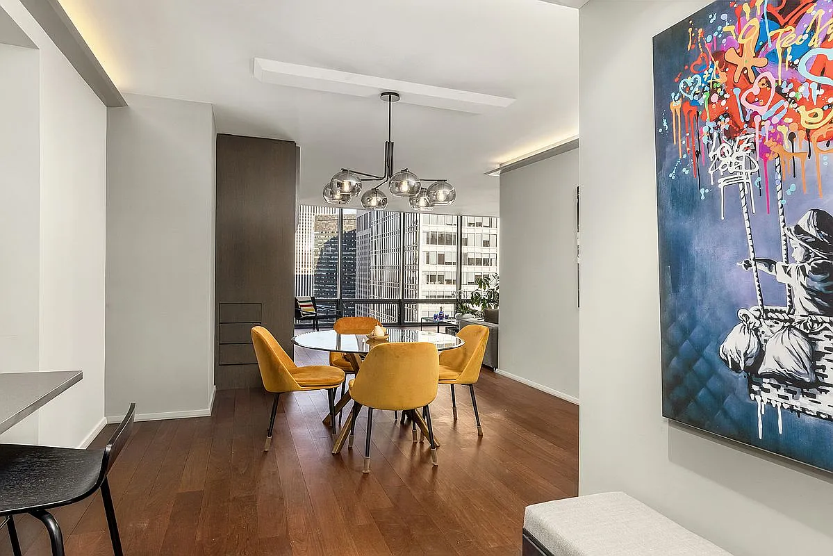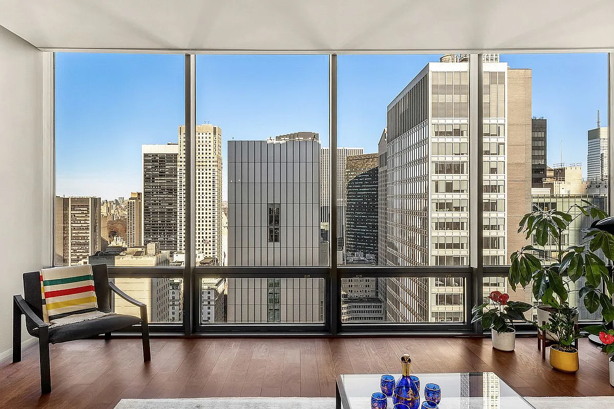 Fully renovated to the highest standards, Apartment 34B is a sleek, modern two-bedroom, two-bathroom-style residence in the iconic 641 5th Ave. Floor-to-ceiling windows capture spectacular north-facing skyline views, filling the home with natural light and showcasing the best of Midtown Manhattan. The apartment features premium finishes, refined craftsmanship, custom details, and a spacious layout ideal for both living and entertaining.