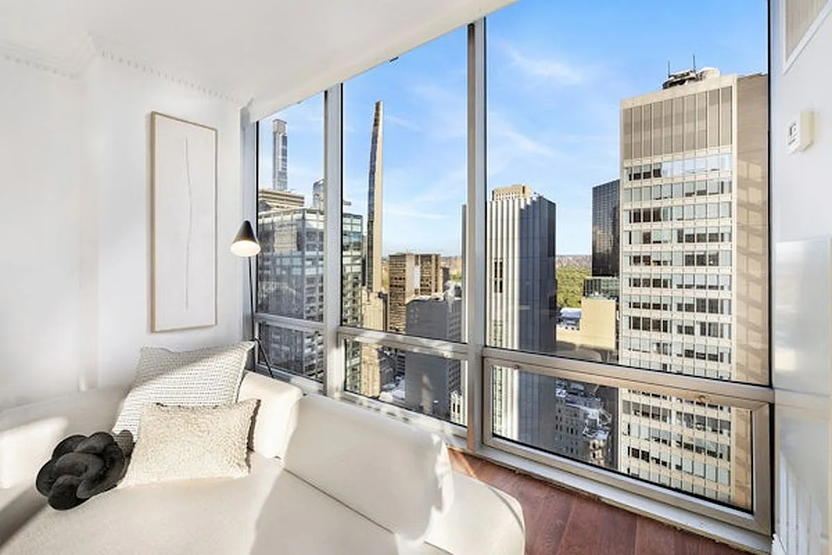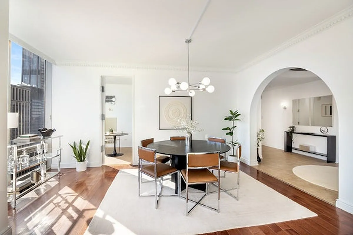 Welcome to Fifth Avenue luxury living and an opportunity to own a bespoke one-bedroom, one-bath corner retreat at one of Manhattan's most prestigious addresses-the legendary 641 5th Ave. Residence 34D2 is bathed in radiant natural light throughout, with floor-to-ceiling windows and high ceilings framing iconic Manhattan skyline views, including Central Park to the north and the East River to the east. Spanning 1,350 square feet, this gracious home offers a thoughtfully designed layout featuring an elegant entrance foyer and gallery ideal for showcasing art and collectibles, a pantry with an in-unit vented washer/dryer for modern convenience, and four large closets providing exceptional storage.