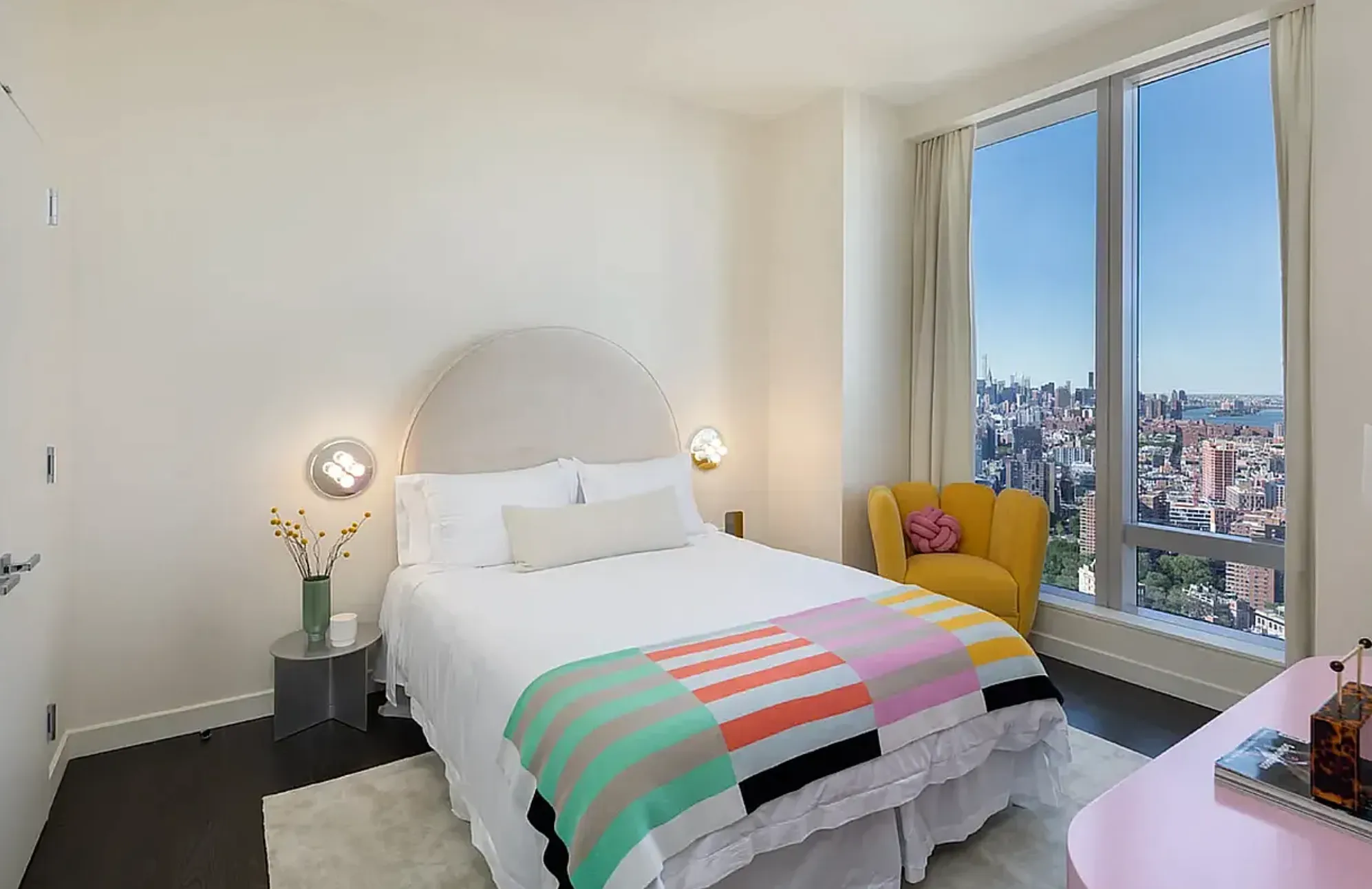 Residence 12J is a 696 square foot one bedroom, one bathroom with an open gourmet kitchen and breakfast bar. This spacious residence faces North East with East River and Williamsburg Bridge views. Warm, modern interiors are brought to life by the renowned design team at Meyer Davis Studio.