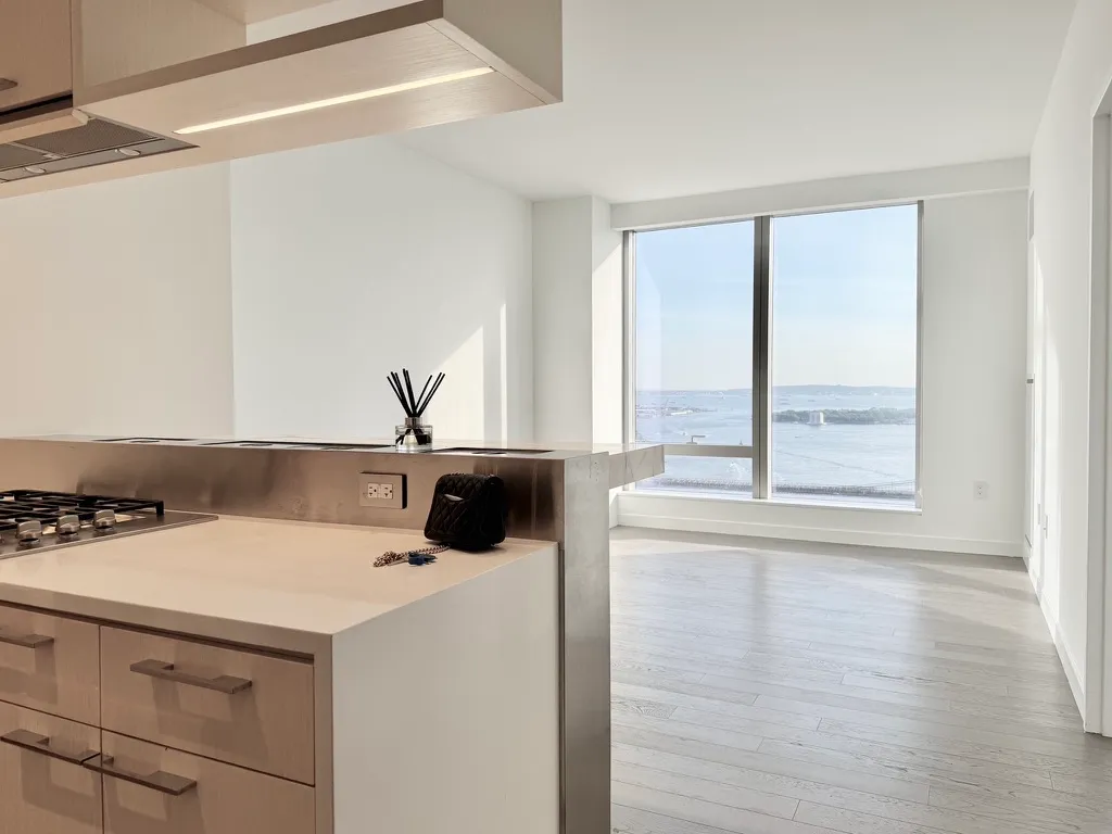 ONE MANHATTAN SQUARE | 20-YEAR TAX ABATEMENT | Around 700 SF SOUTHWEST-FACING ONE-BEDROOM Residence 26N is a beautifully designed 695 SF one-bedroom, one-bath home featuring an open gourmet kitchen with breakfast bar and premium Miele appliances. Facing southwest, this bright and spacious residence offers breathtaking sunset views over New York Harbor and the Downtown skyline. Interiors by the award-winning Meyer Davis Studio showcase custom finishes, 5” wide oak flooring, a marble-clad bathroom with radiant heated floors, and an in-unit washer/dryer.