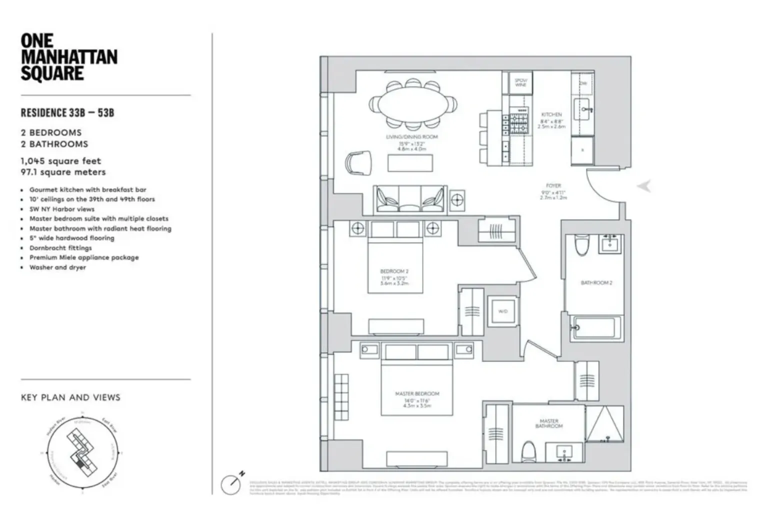 Residence 47B — 252 South St, Flexible Payment opinions. (支付灵活) 2 Beds · 2 Baths · 1,034 Sq Ft · 421-A Tax Abatement until 2039 Experience elevated living at 252 South St, the iconic 80-story glass tower on Manhattan’s waterfront. Residence 47B is a spacious, southwest-facing two-bedroom, two-bathroom home offering unobstructed panoramic views of the New York Harbor, One World Trade Center, Wall Street, and the East River. Residence Highlights 1,034 sq ft of thoughtfully designed space Floor-to-ceiling windows showcasing dramatic skyline and sunset views Open-concept kitchen with Statuario marble breakfast bar and Miele appliances Custom “Dawn Palette” finishes featuring light-wood cabinetry, white-glass panels, white quartz countertops, and 5" light oak flooring Primary suite with radiant-heat marble mosaic floors, glass-enclosed shower, custom vanity, and Dornbracht fixtures In-unit washer/dryer and motorized shades 421-A tax abatement through 2039, offering extremely low carrying costs Unparalleled Amenities Residents enjoy over 100,000 sq ft of resort-style amenities, including: Wellness & Spa: 75-ft indoor pool · Hot tub · Cold plunge · Sauna · Hammam · Full basketball & squash courts · Spin, yoga & meditation studios · State-of-the-art fitness center Entertainment & Leisure: 70-seat theater · Golf simulator · Two bowling alleys · Cigar lounge & library · Culinary lounge & demo kitchen · Children’s playroom · Wine & cellar bar lounge Conveniences: 24-hour doorman & concierge · Private motor court · Building shuttle · Business center · Dry cleaner & tailor · Cold storage · Pet spa · Package valet Outdoor Village Green: Over 1 acre of landscaped gardens by West 8 Design (known for The Hills at Governors Island) featuring a Tea Pavilion, relaxation lawns, dog run, outdoor dining areas, playground, and fire pits.