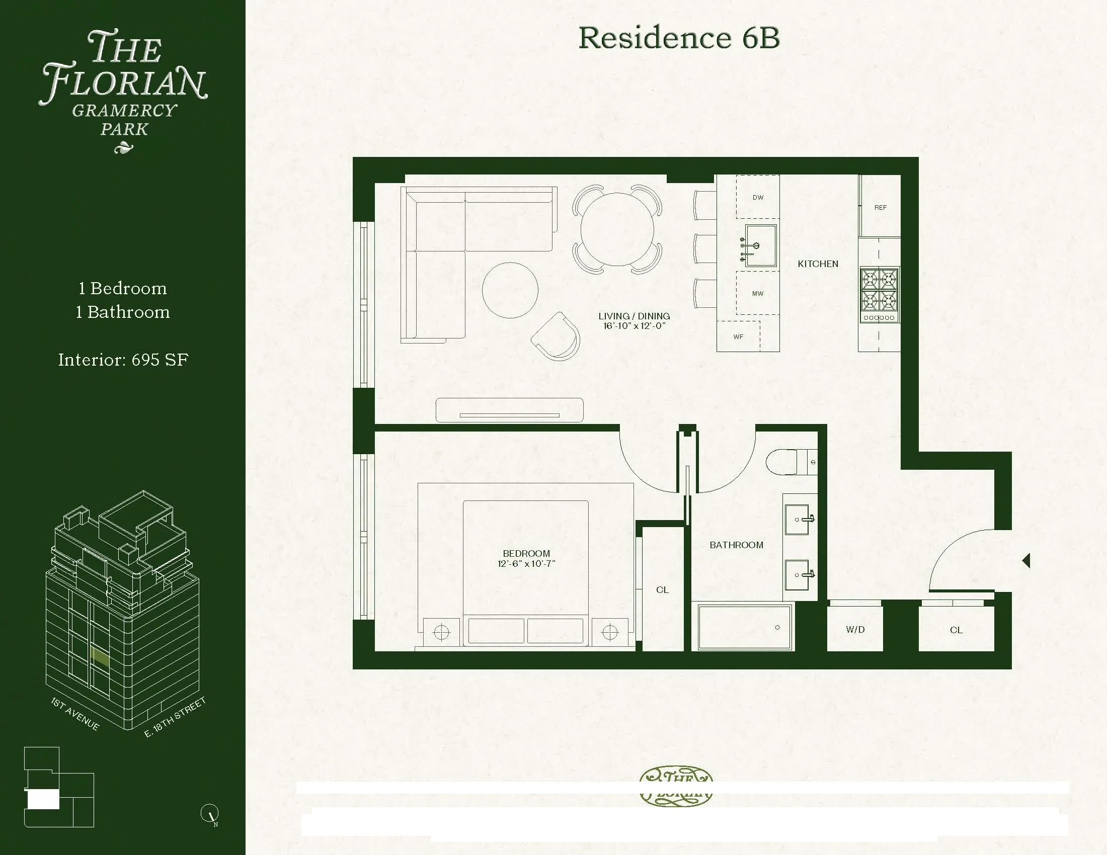 1 BD · 1 BA695 sq ft
