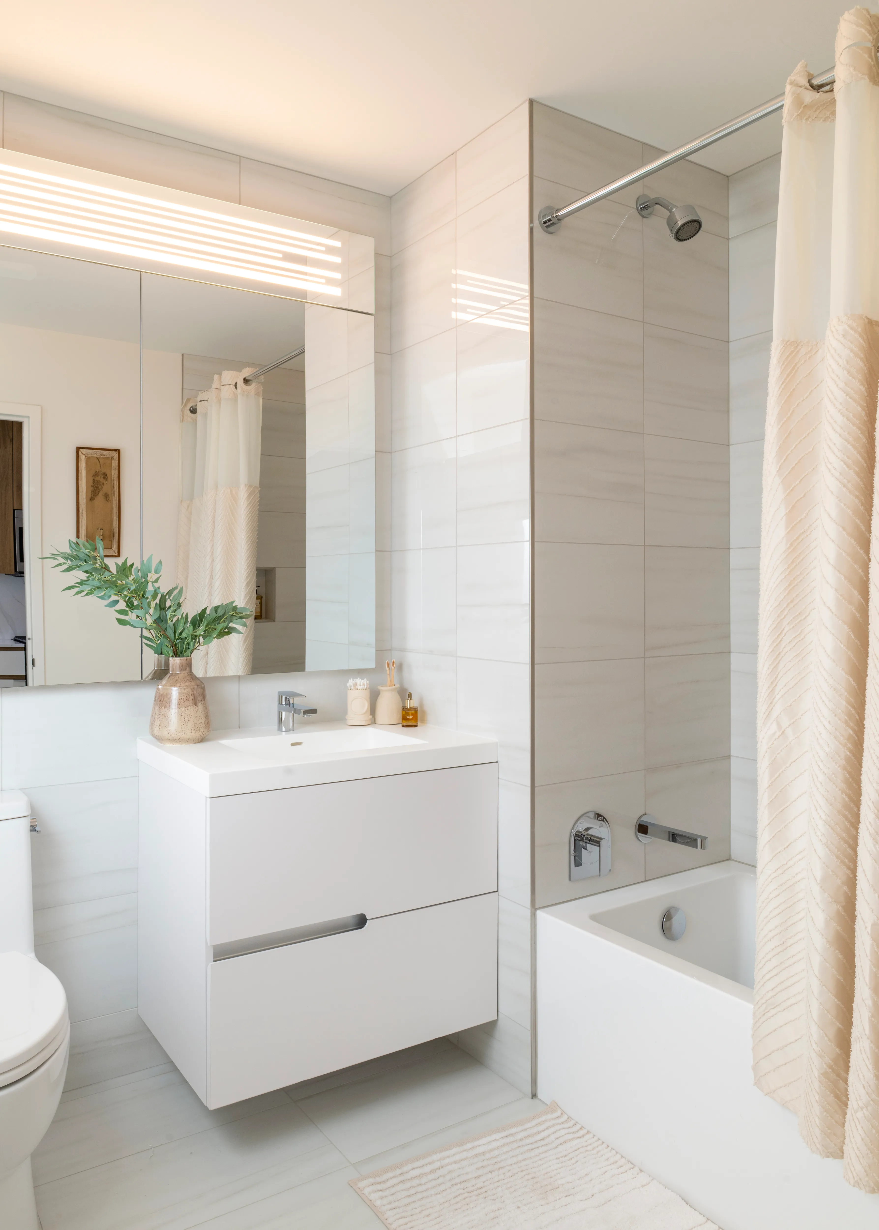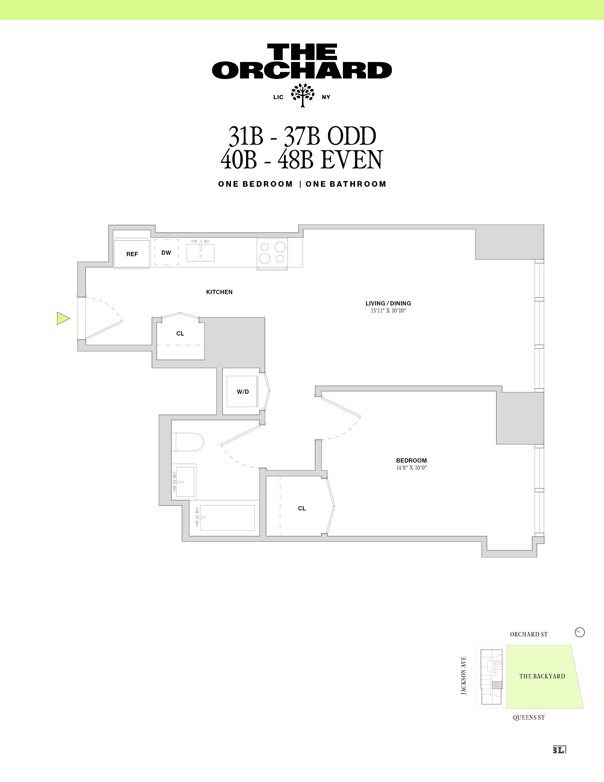 Welcome to 42-06 Orchard St, Residence 35B, a one-bedroom, one-bathroom home offering a bright, open layout framed by oversized windows, soaring ceilings with The Backyard views. Enjoy a sleek kitchen with quartz countertops, two-tone cabinetry, and a Samsung stainless steel appliance suite, plus a spa-inspired bath with polished porcelain tile and chrome fixtures. Thoughtful touches like custom closets, solar shades, keyless entry, and in-unit washer and dryer make city living effortless.