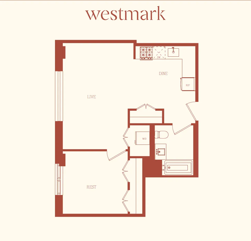 Inside, the residential experience begins in artful corridors accented with rich wood tones, creating a warm and sophisticated welcome home. Thoughtfully Designed Residences Every Westmark apartment reflects a commitment to sophisticated design and quality craftsmanship. Residences boast bright, open layouts that maximize natural light, pouring in through floor-to-ceiling windows that frame stunning city views and create a direct connection to the outdoors.